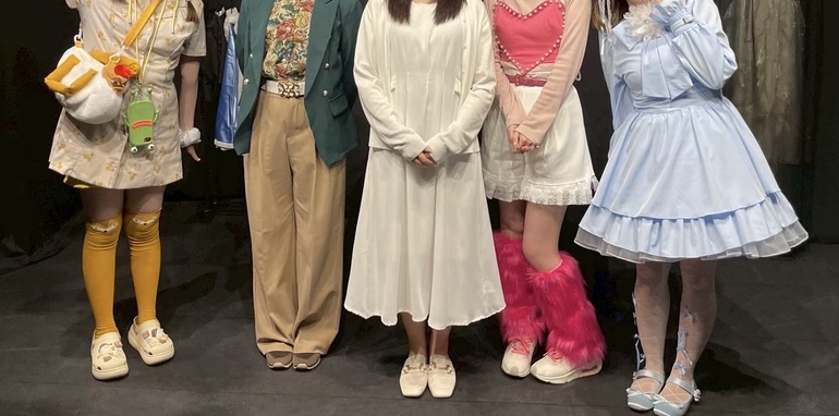 《第4回公演「ハイヒールにキスして」より衣装写真。既製品に手作りで装飾を施したりもしています。》