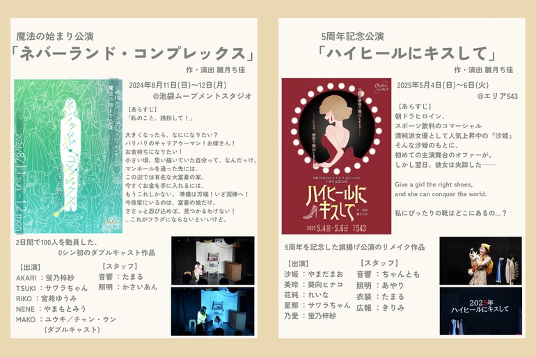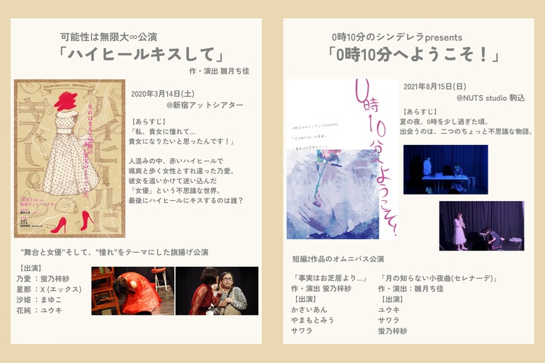 社会人演劇ユニット「0時10分のシンデレラ」の雛月ち佳・蛍乃梓紗と申します。