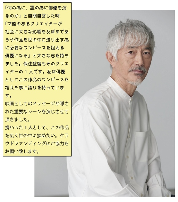 映画は一人で作れないからこそ面白いんだと思います。ここまで、本当に多くの、優しい人たちが手を差し伸べてくれて、その都度、必要な力や技術を発揮して尽力してくれました。本当に恵まれているなと感じます。クラウドファンディングでご支援いただく皆様も、その一人です。この映画を送り出すのに手を貸してください。