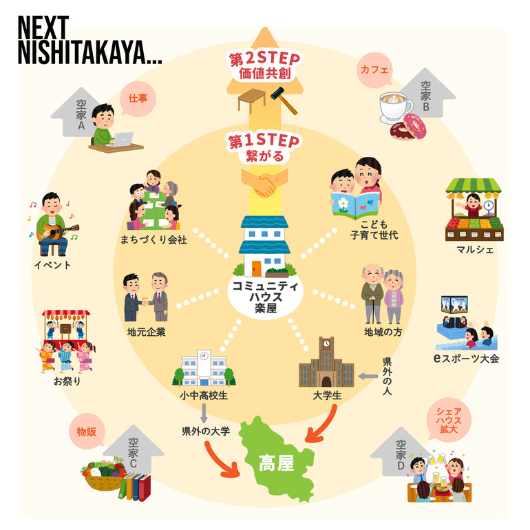 これからもこの動きや繋がりを強めていき、西高屋をまちごとリノベーションするため、一緒にまちを作ってくれる人を増やしていきたいと思っています