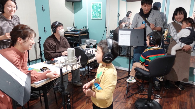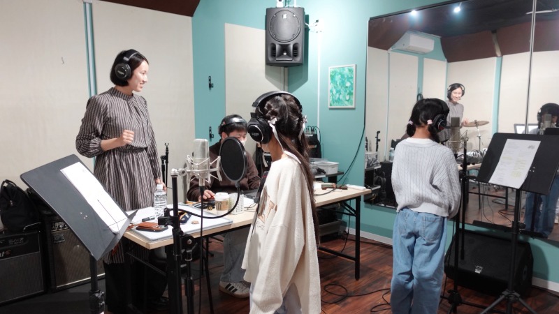 最初は少し緊張した面持ちでしたが、マイクの前に立つとみんな真剣に、一生懸命に歌ってくれて、とても素敵な歌声を録ることができました。