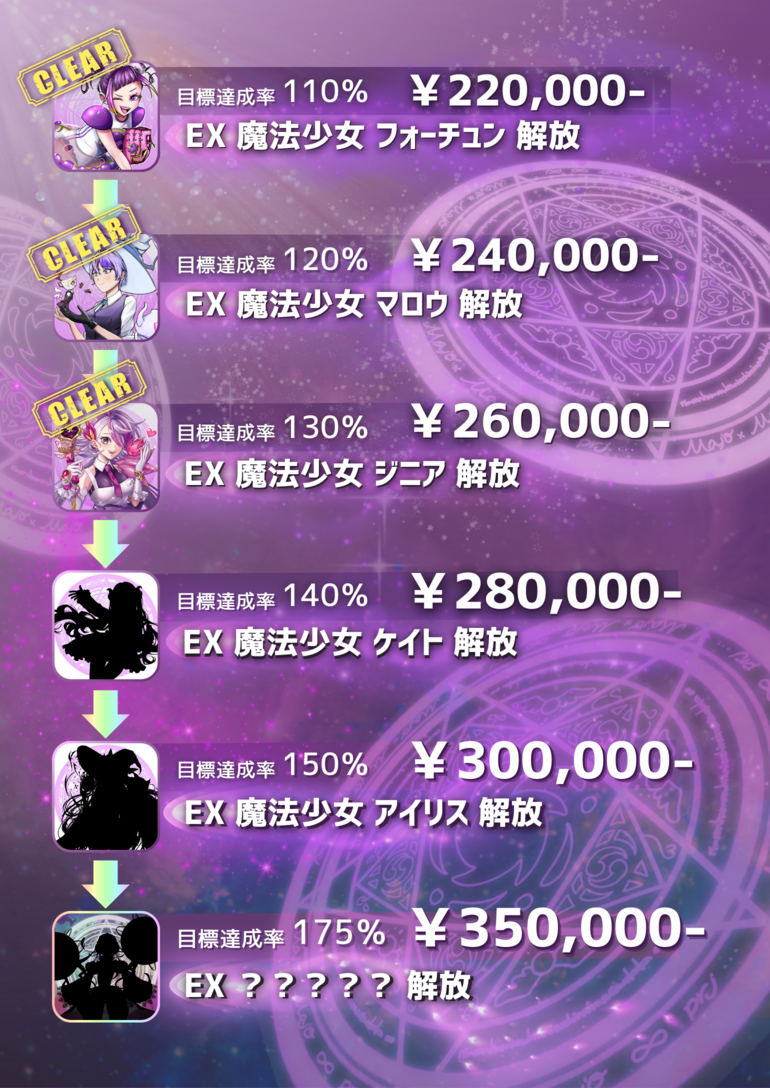次は¥280,000に到達したときに、魔法少女ケイトを解放します(*´꒳`*) ストレッチゴールも折り返し、まだまだ盛り上げて頂けると嬉しいです!特に、最後は少し特殊なカードになりますので、お楽しみに!