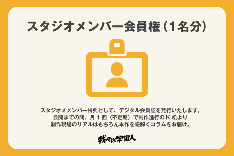 スタジオメンバー会員権(1名分)スタジオメンバー会員として登録させて頂きます。メンバー特典として、デジタル会員証を発行いたします。