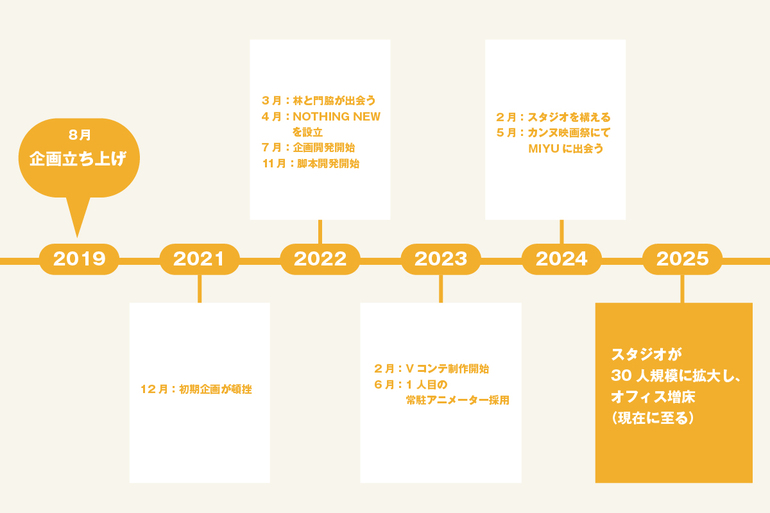 2022年から制作をスタートさせ、アニメーターをはじめ地道に仲間探しを行ってきました。これまで実写の制作経験はありましたが、アニメーションは全くの素人。