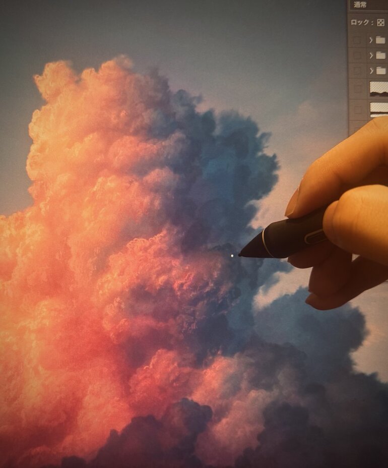 作品のこだわりである、リアルな質感を追求するため仕上げ工程でもレイヤーを追加して動かすなど、細かい調整が必要になります。