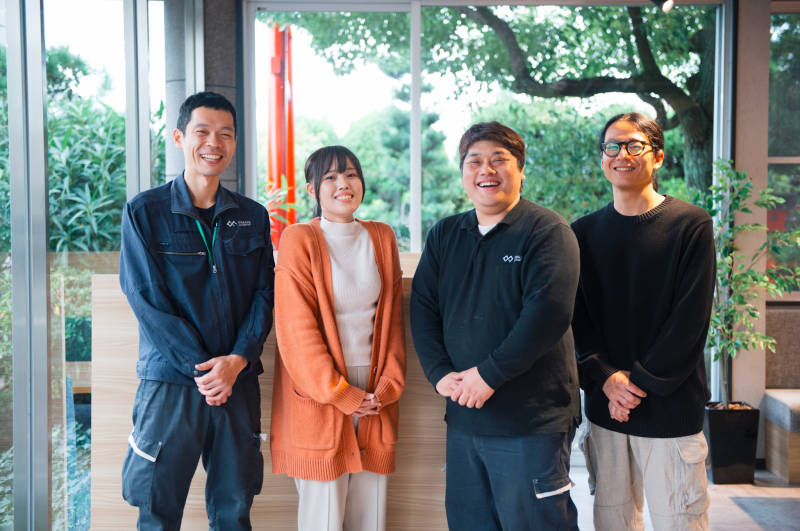 写真左から、編集部の中島、中村、永吉、代表の石川。