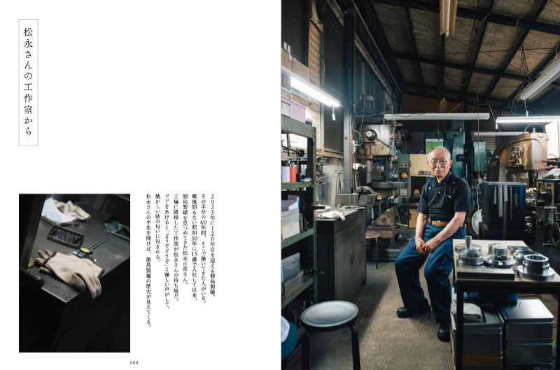 「松永さんの工作室から」の扉ページ。勤続70年の名物社員です。