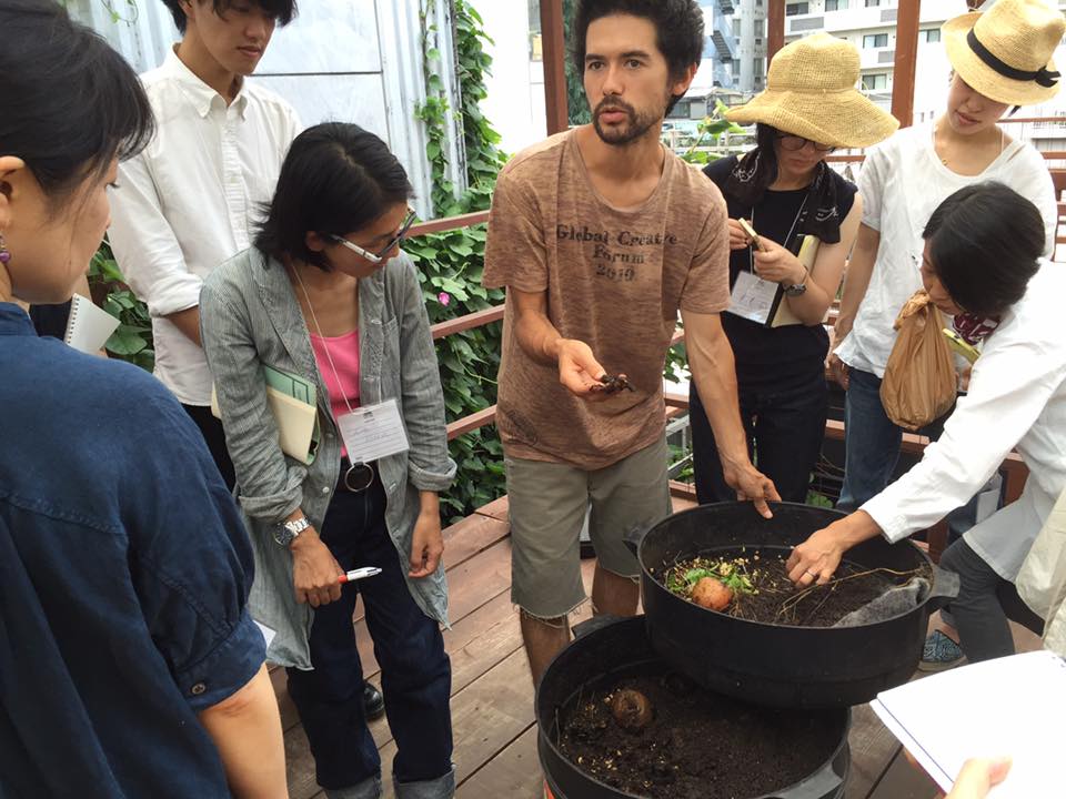 東京で行われたミミズコンポストをつくるワークショップの様子。