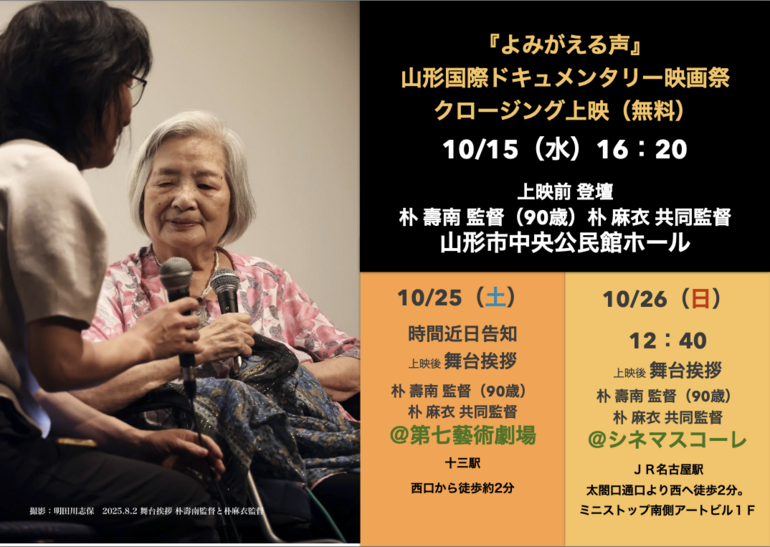 【神奈川県:横浜シネマリン】好評により12月に朴壽南監督特集と『よみがえる声』再上映決定!
