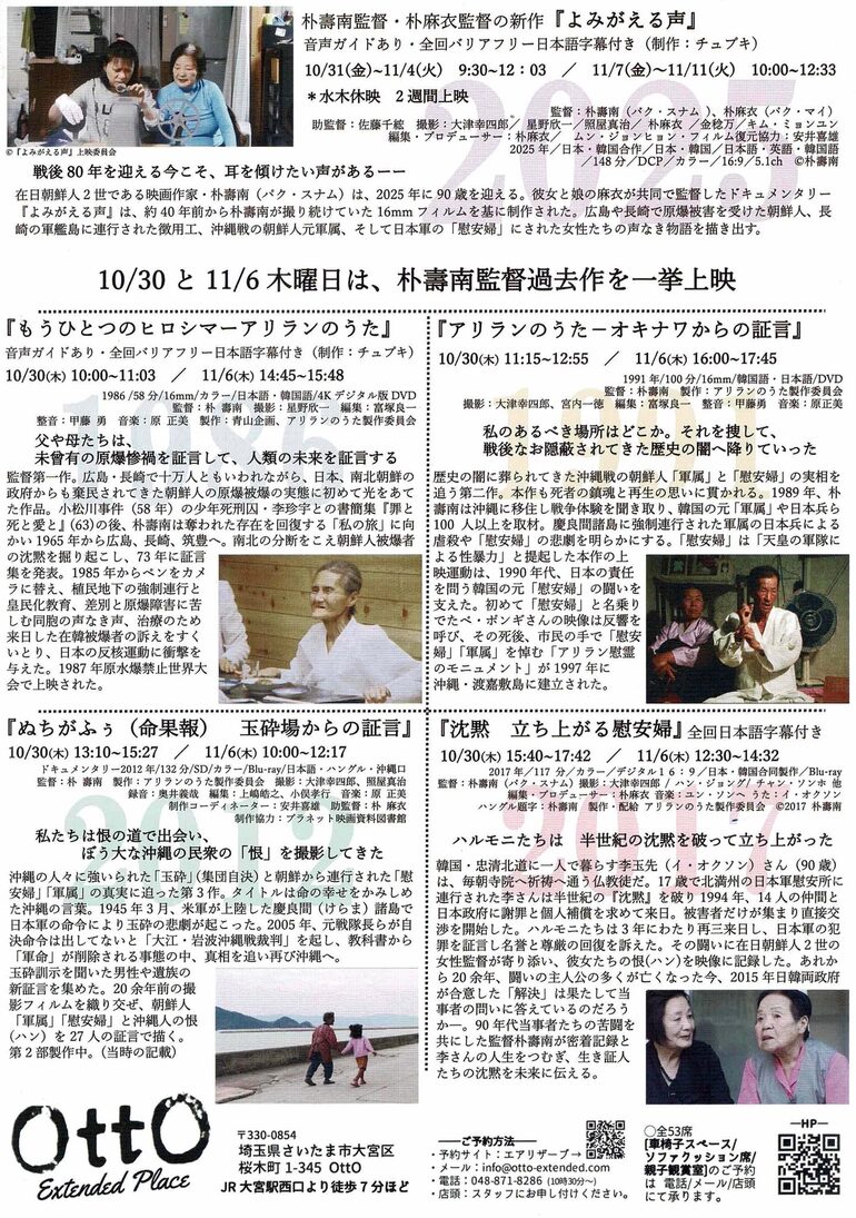 10/30より『よみがえる声』と朴壽南監督の過去作一挙上映が開催されます!