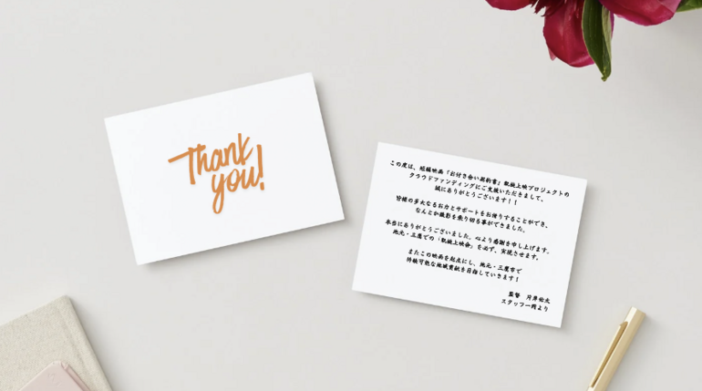 ご支援者様に監督・スタッフ一同より、心を込めたお礼メールをお送りします!