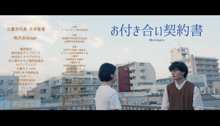 三鷹出身の監督が三鷹代表として三鷹を舞台に描いた短編映画『お付き合い契約書』。初監督作品にして銀賞受賞した本作を引っ提げ、地元・三鷹での「凱旋上映会」を実現し、三鷹市の人や街の文化を守りたい。