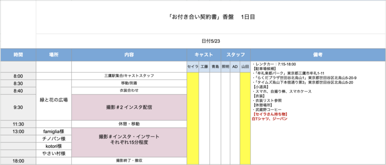 制作データPDF(PPM資料・台本・香盤表)をお届けします!普段なかなかお目にかかれない映画制作のリアルな裏側の生データを垣間見ることができます。