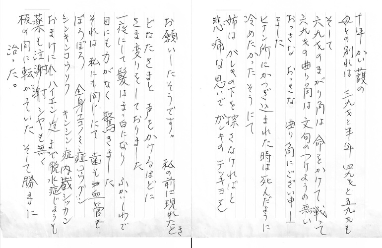 愛子さんが私に書いてくれた手紙です。愛子さんがあの津波を、波瀾万丈な人生を、どう生き抜いてきたのか。言葉の力を感じていただけると思います。