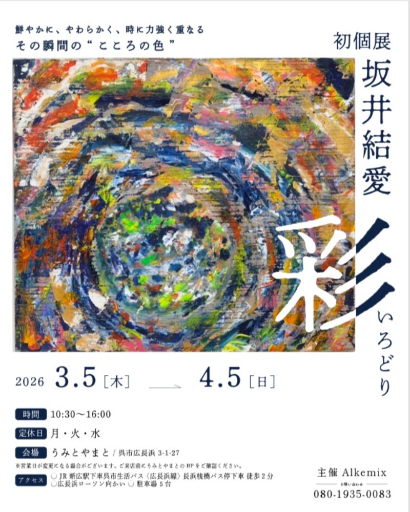 昨日アーティストとともに搬入・設営が無事終了し、本日より呉市のうみとやまと様にてAlkemix所属アーティストの坂井結愛の個展が開始されます。