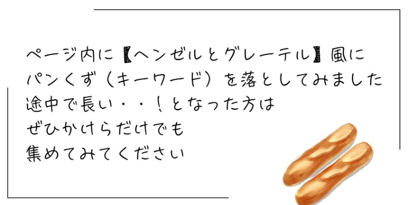 個人的なエピソードになりましたが、きっとこれを読んでいる方は、まだお会いしたことがない方が多いと思います。どんな人生を歩んでこられて、昨日はどんな夢を見て、朝ごはんは何を食べて、今日一日どんな日を過ごされているのかを知りません。人生の先輩はたくさんいるので、まだまだ自分は語れる程ではありませんが、生きていればそれなりにいろいろなことが起こるし、きっと想像もしないようなことも起こるでしょう。心や体がばらばらに崩れてしまいそうになる日もあるかもしれません。今集めてもらったパンくずに例えるのもなんですが(『ヘンゼルとグレーテル』では鳥に食べられちゃうのは置いておいて・・)、小さなかけらも集めていけば道になるかもしれないし、並び替えれば愛?胸ポケットにそっと入れて、あなたを勇気づけてくれるお守りになるかも・・!なんて思いで。僭越ながらこの言葉を、まだ会ったこともないかもしれないあなたに贈らせていただきました。