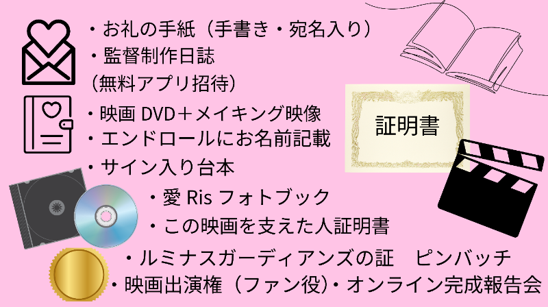 推し活に最適なリターンから、ファンではないけれど支援しようかなと思ってくださる方、このプロジェクトの最後を見届けたい方へ、など多種多様なリターンをご用意しました。