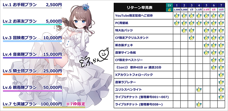 ※ プランの併用可 (ライブSチケット+グッズの Lv.4+Lv.5 など)