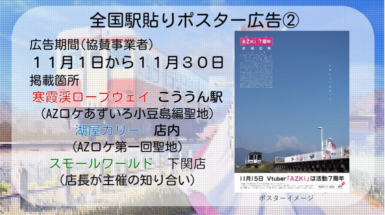 掲載時はハッシュタグ「#旅するAZKi応援広告」「#AZKi7thHM企画」の2つを付けていただけると助かります!
