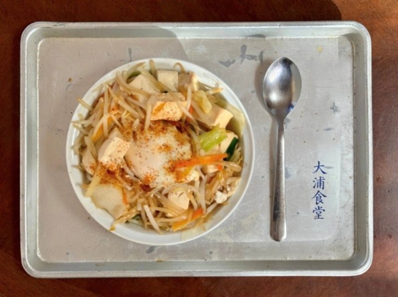 「バタ丼」は、豆腐ともやしをバター(マーガリン)醤油で炒めてご飯の上に乗せるだけのシンプルな丼。画材を自費で購入しなければならない藝大生のために、食堂の草創期から安価なメニューとして提供されていた「豆腐のバター焼き」を、ある時期から北澤さんが丼にして振る舞い始めました。