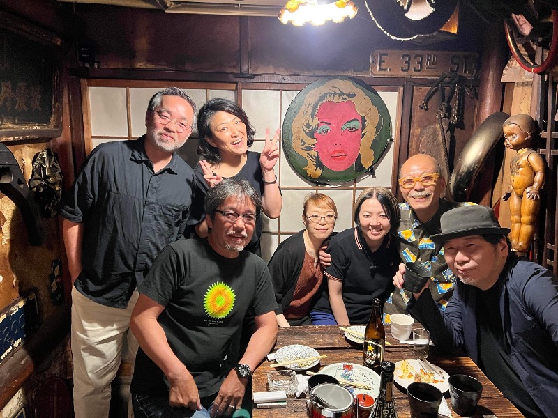 発足したのは令和5年(2023)7月。場所は谷中の居酒屋「町人」です。発足の目的は、今般のマスターの本をつくること。完全に仲のいい卒業生たちのノリです。ちなみに愛好会の代表・亀井は写真の一番左に写っています。