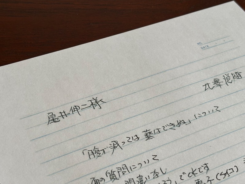 写真はマスターからの校正ゲラの戻しに添付されていた送付状です。文面は省略していますが、要件が簡潔にかつ整然と書かれている様子に、マスターの〝シゴデキ感〟が溢れている気がします。