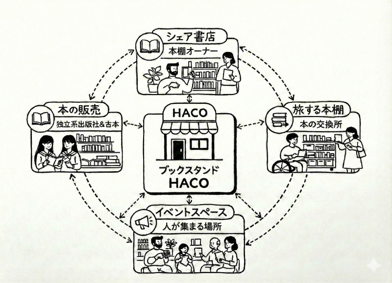 〈HACO〉は、大きな利益を生み出す場所ではありません。それでも私たちは、本をきっかけに人がつながり、街の中に小さな拠点が生まれることに、確かな価値があると考えています。