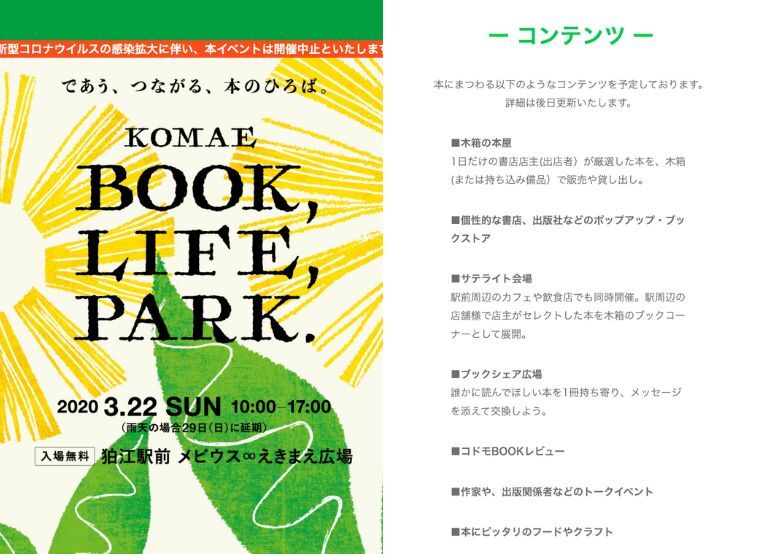 中止になった「BOOK LIFE PARK」のイベントサイトはこちらからアクセスできます
