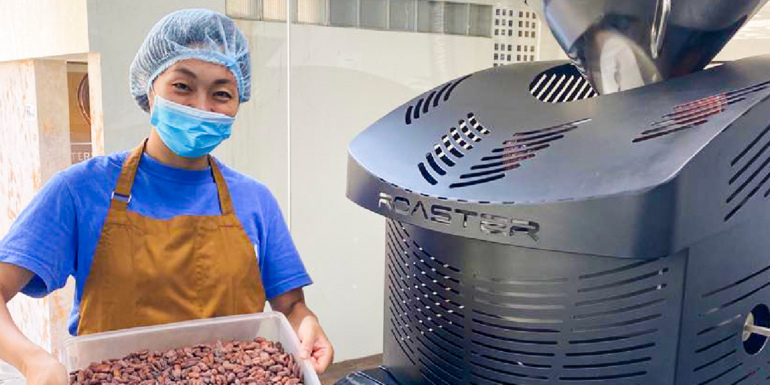 アプレリアさんから 「インドネシアにも高品質なカカオがあることを、あなたに日本で広めて欲しい」と言われ、これまでの自身のキャリアや強みをすべていかすことができる役割に、胸が高鳴りました。そして私の監修の元、現地で焙煎をしたカカオニブ60kgを日本に持ち帰り、輸入事業がスタートしました。