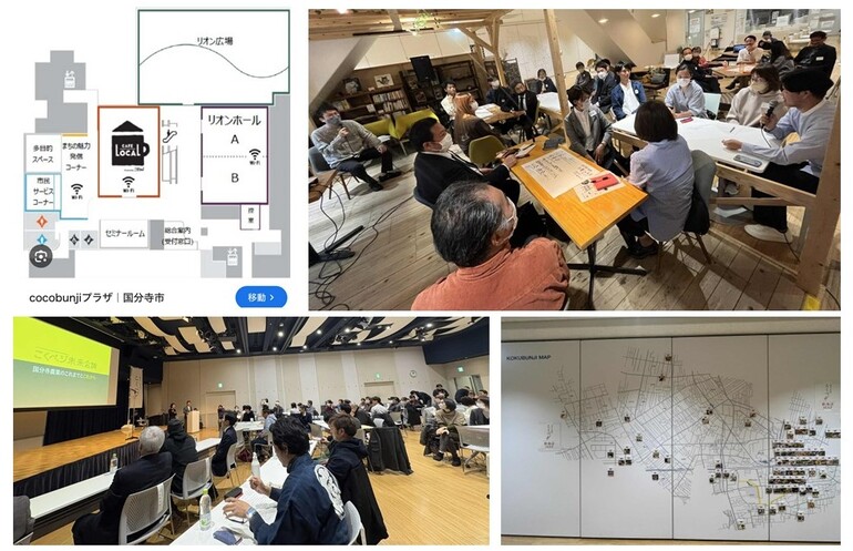 私共が守るのはこれまで通り「国分寺のローカルや文化を深掘る」こと。駅ビル5階のココブンジプラザにあるからできること、役割、使命もあると思います。リオンホール、セミナールーム、多目的スペースには、年中集まりや会合、シンポジウムやイベントが行われ、国分寺内外の方々が来ます。リオン広場は、芝生の屋外広場で友人や親子連れ等で寛げるとっても気持ちのいい場所です。カフェローカルは、ココブンジプラザに来訪される方々のくつろぎや交流の場所でもあります。それに加えて、私どもは、ここで街のことを知ってもらい、街に繰り出していきたくなる、「街への出発点」となることを目指したいと考えます。ここでは地域の野菜を堪能できます、そして、地域の歴史や文化を知ることができます。目の前に国分寺マップがありますが、テーマを変えてマップが変遷していきます。ここから街に興味をもって街に繰り出していきたくなるマップです。カフェローカルでは、だいたい月に一回、ローカルテーブルというイベントも行っていて、地域の鍵となる方々にご登場いただき、課題解決や未来の作戦会議を繰り広げています。