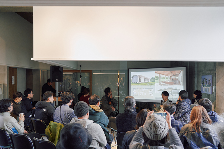 建築テック系スタートアップ、茅葺き職人、飲食店オーナー、ファーマーズマーケット主催者、漁師、山林コーディネーター、コンポストアドバイザー、自然葬のスタートアップ、量り売りグロサリー、アパレルブランド・オーナー、バイオアーティストなどが同じ会場に居て、それぞれ登壇して下さり互いに刺激を与え合いました。会場は京都の丹波口にある複数の建物を使いました。時差を考慮しながらオランダや台湾とつないで現地の専門家とオンラインでやり取りもしました。2日間のイベントだったので、登壇者も参加者も泊まりの方が多く、親睦を深めることもできました。