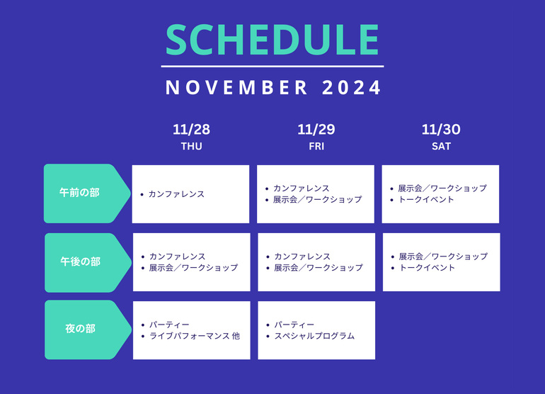 日程:2024年11月28日(木)、29日(金)、30日(土) 3日間
