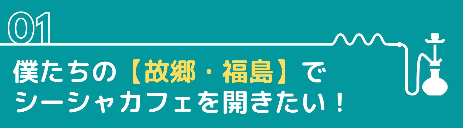 僕たちは、『若者が沢山集まるシーシャ屋を創り、若者同士で繋がって一緒に福島の未来を創っていく』を掲げ、自分たち若者から若者へ夢と希望を与えられる存在になれるよう努力していきます。そして、若者から福島を活気あるワクワクする地域にできるよう尽力していきたいと思います。