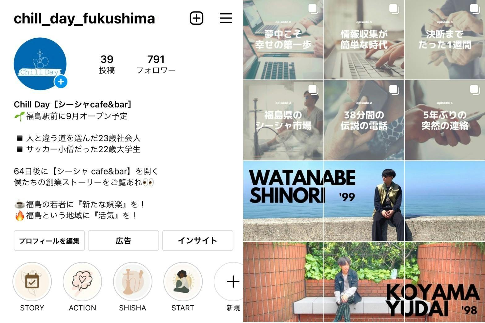 僕たちはInstagramで創業のストーリーを発信しています。「起業したい」「挑戦したい」というような同じ志を持っている人に対して、少しでもきっかけを与えることができればいいなと思って発信してきました。僕たちが開業するためにやってきたことや難しいと感じた壁など、一から全て記録していますので、僕たちのストーリーを追って見て頂けると幸いです。