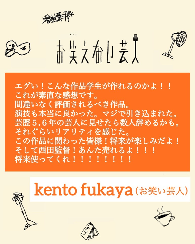お笑い芸人のkento fukayaさんから応援コメントが届きました!