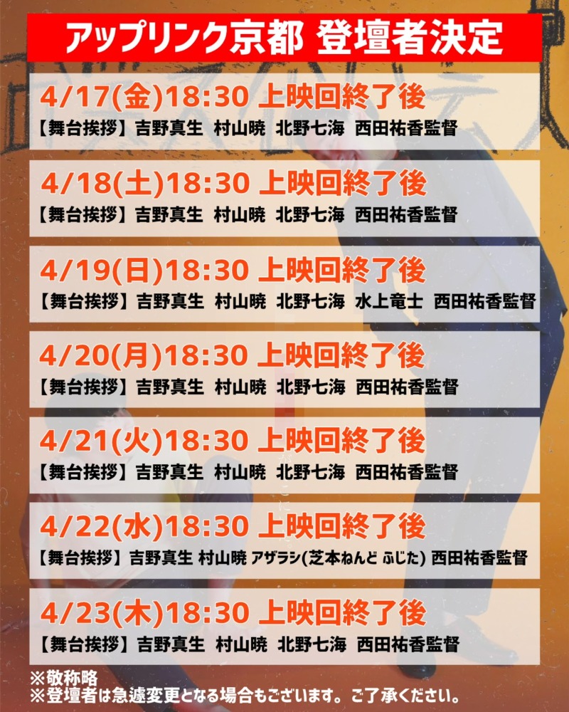 全日程、毎日舞台挨拶やります!!!