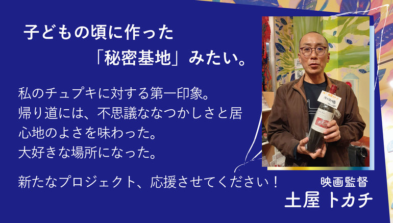 写真のキャプション子どもの頃に作った「秘密基地」みたい。私のチュプキに対する第一印象。帰り道には、不思議ななつかしさと居心地のよさを味わった。大好きな場所になった。新たなプロジェクト、応援させてください!映画監督 つちやとかち