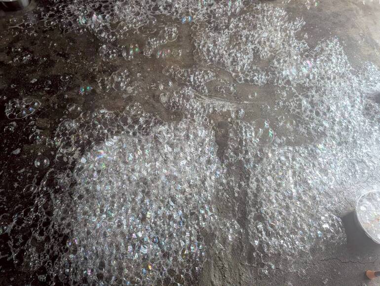 足元に目を向けてみますと、シャボン玉の泡が積もっていて、こちらも何とも神秘的なことでしょう!
