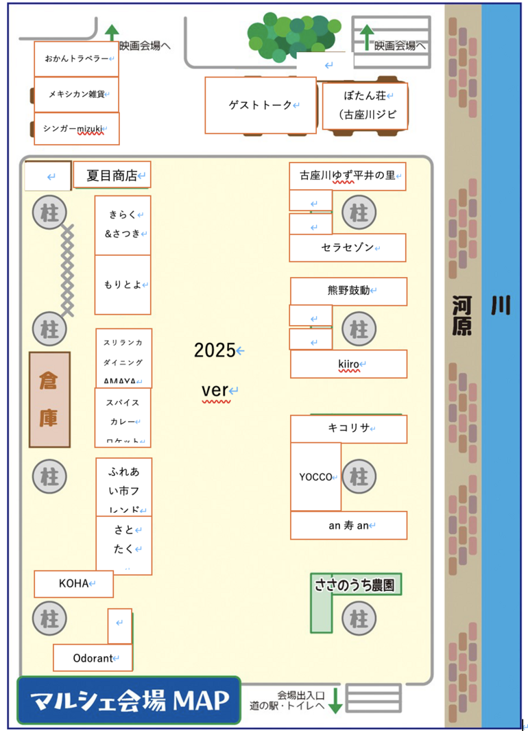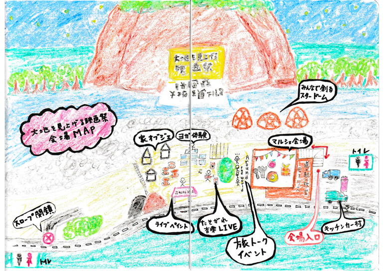 開催される、大地を見上げる映画祭- vol.2 カラフル - の<会場マップ>と<タイムテーブル>です。