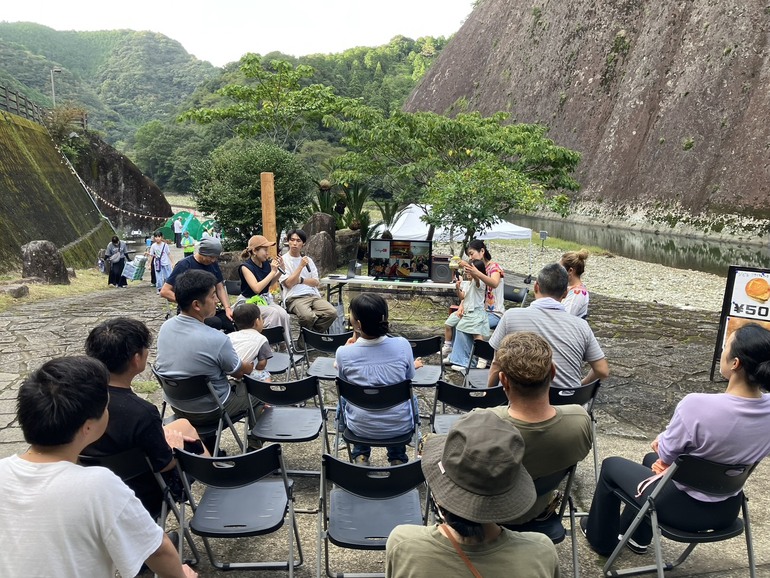 イベントが開場すると早速お出迎えしてくれたのは、キッチンカーに、マルシェ。古座川町とその周りの町から来てくれた出店者さん達が皆様を暖かくお出迎え。地域の人(出店者さん)とのやりとりを楽しんでもらうのは、私たちがシンプルに味わってもらいたい事。