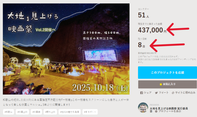 ぜひ『大地を見上げる映画祭』の想いに共感いただけたなら、クラウドファンディング目標達成に向けてあと少し、応援の後押しをいただけるととても嬉しいです!