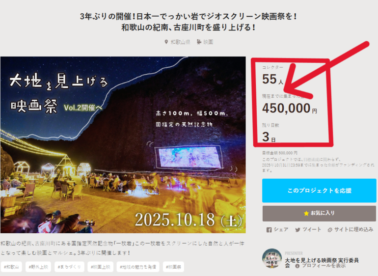 本日までに【55人】の方から【450,000円】のご支援をいただいています!