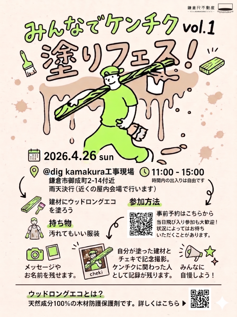 4月26日(日)に、dig kamakuraの工事現場で「塗りフェス!」を開催します。