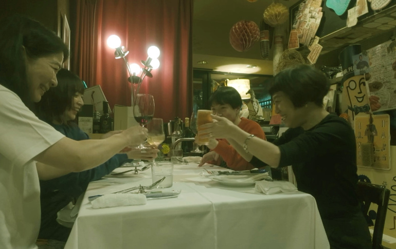 イルピアットカチャトラさんで、奈津子さんと田口ご夫婦とで乾杯の様子