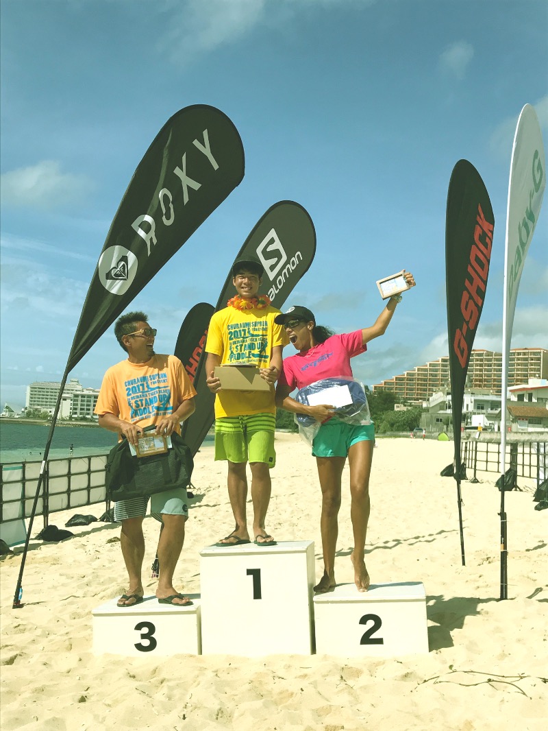 そのうち、恩納村のビーチでの大会『CHURAUMI SUP RUN』(現在は南部のビーチで開催中)や金武町での大会、