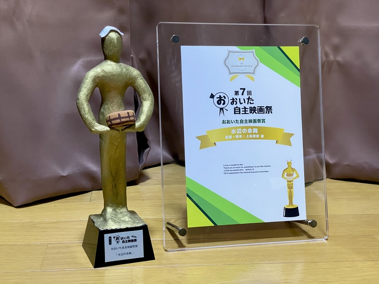 おおいた自主映画祭にて、映画『犬猫とあくびと余興』収録作品の1つ『水辺の余興』が 準グランプリ(おおいた自主映画祭賞)を受賞いたしました!