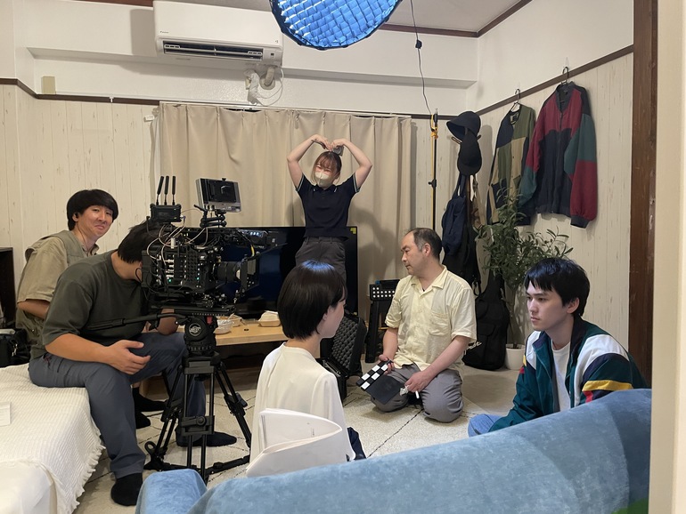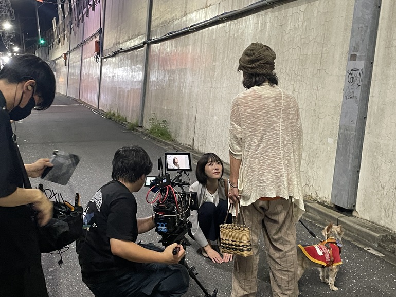 「犬を欲しがる女と猫のようなものをかぶった男」撮影時のオフショットをチラリ。