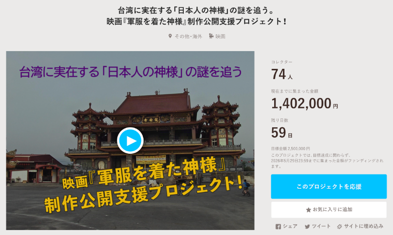 映画『軍服を着た神様』制作公開支援プロジェクトをクラウドファンディングで実現!