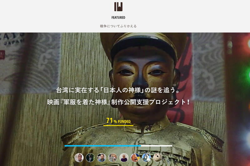 《台湾に実在する「日本人の神様」の謎を追う。映画『軍服を着た神様』制作公開支援プロジェクト!》3/20の開始から、はや1ヶ月が経過。そんななか嬉しいニュースです!とうとう今週、目標額の70パーセントを突破しました!