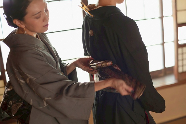 ・手前:晴川穂浪さん(着付け師)、Ginrock、吉倉咲季さん(ダンサー・表現者)